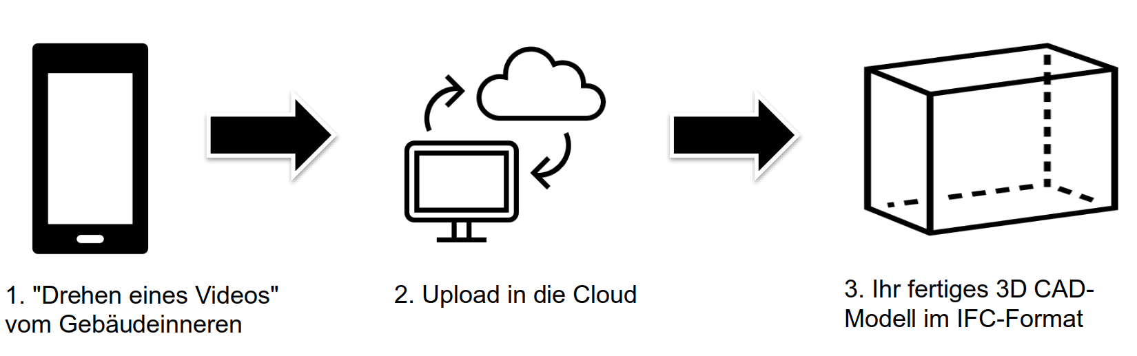Das Prinzip der fertigen Anwendung erklärt sich in drei einfachen Schritten: