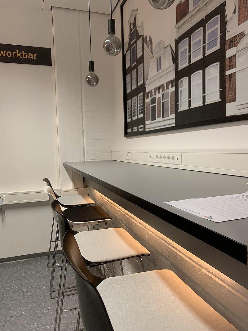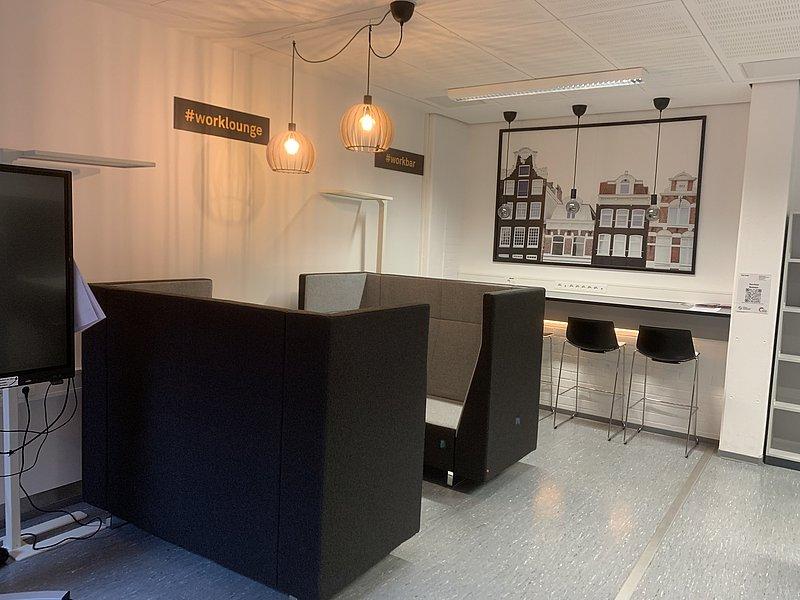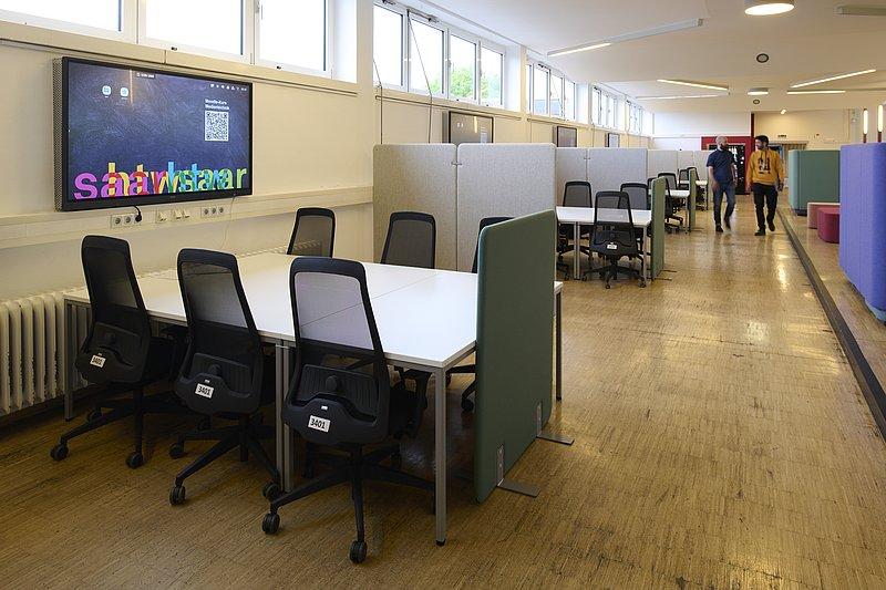 Durch die Aufwertung bestehender Aufenthaltsräume und die Umwidmung weiterer Büro- und Seminarräume konnte zudem die Aufenthaltsqualität auf dem Campus gesteigert werden. Seit der Covid-Pandemie nehmen Studierende weniger häufig an Präsenzveranstaltungen am Campus teil. Durch die attraktiveren Lernräume erhofft sich die htw saar einen für die Studierenden erkennbaren Mehrwert der Kooperation in Präsenz und damit eine erhöhte Präsenz der Studierenden mit Lerngruppenbildung auf dem Campus. Neben den Räumen mit digitalen Lernplätzen wurden Rückzugsorte für individuelles Lernen oder Entspannen sowie neuartige kollaborative Räume für Präsens-, online und hybride Gruppenarbeiten realisiert.