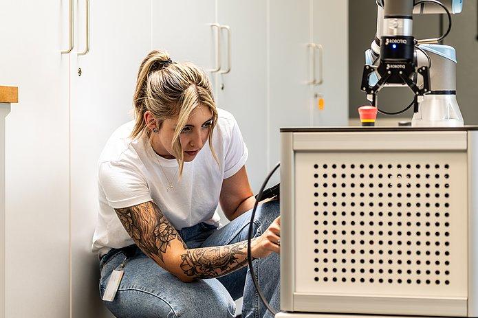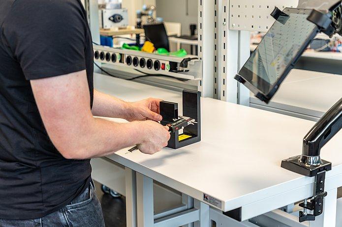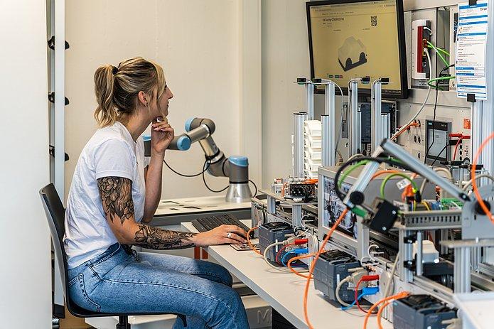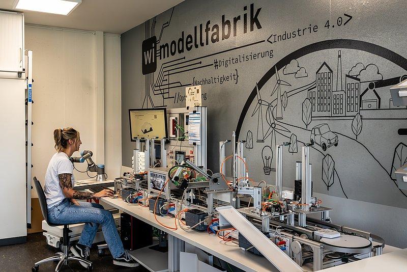 Die Modellfabrik ist ein interdisziplinäres Lehr- und Forschungslabor am Institut für Wirtschaftsinformatik. Hier erleben und gestalten Studierende innovative Technologien aus Wirtschaftsinformatik, Produktion und Logistik hautnah. Ziel ist es, komplexe Prozesse aus Digitalisierung, Fertigung und Logistik anschaulich, interaktiv und praxisnah zu vermitteln.