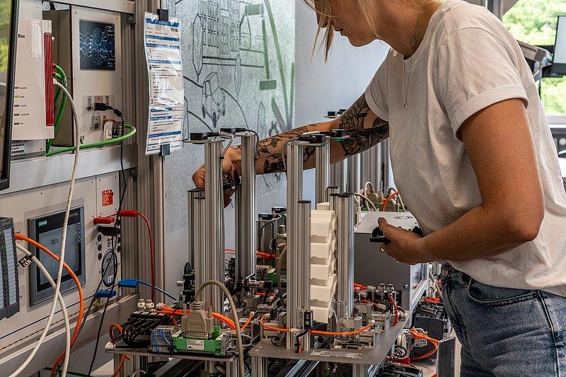 Das zweite Projektziel fokussiert die Entwicklung und Erprobung innovativer Lehr-/Lernformate. So wurden hochschulweit digitale Lernplätze aufgebaut, neue Lehrformate wie der Moodle-Kurs »Digital Skills für Ingenieure« entwickelt und spezifische Lerneinheiten innerhalb der Modellfabrik konzipiert. Lehrende erhalten durch vielfältige Weiterbildungsangebote, einen Selbstlernkurs und individuelle 1:1-Coachings gezielte Unterstützung, um Future Skills didaktisch wirksam in ihre Lehre zu integrieren. Das dritte Projektziel widmet sich dem Transfer erprobter Formate in neue Kontexte. Die im Projekt entwickelten Lehr- und Lernszenarien werden von Pilotmodulen auf weitere Module übertragen. Die Zuordnung von Future Skills ist in der Moduldatenbank für weitere Module möglich. Zur Würdigung exzellenter Lehrkonzepte wurde ein studentischer Lehrpreis konzipiert, der von einer Arbeitsgruppe unter Einbezug des AStA gestaltet wurde; Projektergebnisse wurden auf Konferenzen und in Publikationen präsentiert und in nationale Arbeitsgruppen eingebracht. Das vierte Projektziel ist auf die strukturelle Verankerung der Projektergebnisse ausgerichtet. So wird das Future Skills-Modell im Rahmen der Systemakkreditierung zur Operationalisierung des Leitbilds Studium und Lehre genutzt und dient in Curriculumswerkstätten der Weiterentwicklung von Studiengängen. Der studentische Lehrpreis macht Best-Practice-Beispiele sichtbar. Modellfabrik, Echtzeit- und Realdatenbank, digitale Lernplätze und dezentraler Gerätepool werden in Lehr-/Lernszenarien eingesetzt und bleiben der Hochschule erhalten.