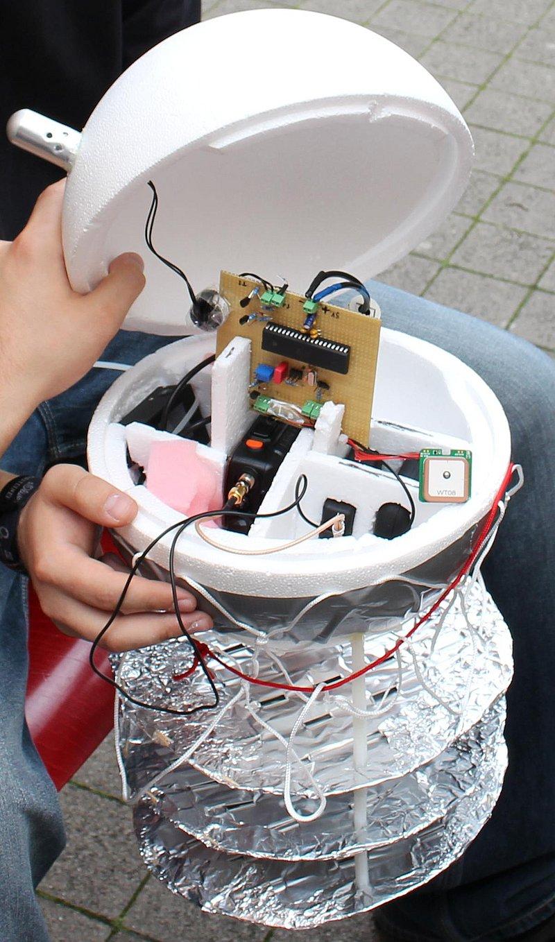 Flug in die Stratosphäre mit einem Ballon mit Durchmesser von 220 cm und einer max. Tragkraft von ca. 4000 g.