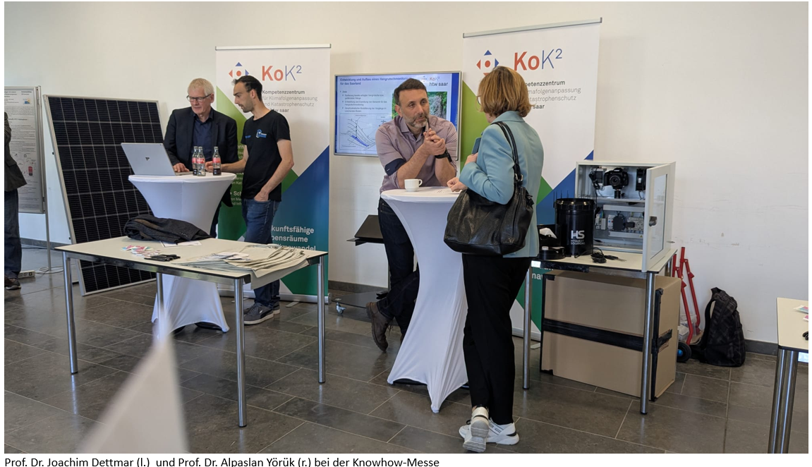 Das KoK² war vom 02. bis 04.10.2025 mit einem Stand auf der Themenmeile „Zukunft durch Wandel“ auf dem Bürgerfest zum Tag der Deutschen Einheit in Saarbrücken vertreten. In diesem Rahmen fand ein großer Austausch mit den Bürgerinnen und Bürgern statt. Außerdem wurden die im April 2025 veröffentlichte Extremstarkregengefahrenkarte für das Saarland, sowie verschiedene Messgeräte wie dem QLiner II von OTT vorgestellt.