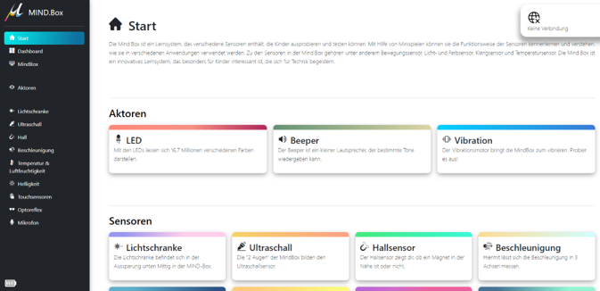 Bei der MIND.Box handelt es sich um eine Sensorbox zur Messung verschiedener physikalischer Größen (Beschleunigung, Orientierung im Raum, Temperatur, Helligkeit, Lautstärke, Abstand, Berührung, …) mit der sämtliche Inhalte des Mathematik-, Physik- und Informatikunterrichts behandelt werden können.