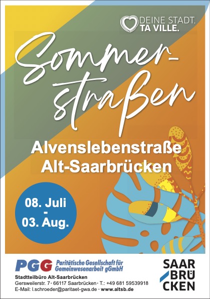Vom 8. Juli bis 3. August 2025 findet das Event in der Alvenslebenstraße statt, von der Einmündung Hohenzollernstraße bis zur Bebauung in Richtung Goebenstraße. Veranstalter sind das Kulturamt der Landeshauptstadt Saarbrücken und das Stadtteilbüro Alt-SB.