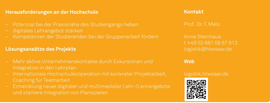 Praxisnähe kann vieles bedeuten. Eine Datenbank mit wertvollen Kontakten zu Unternehmen besitzt und pflegt die htw saar schon länger. Doch nun werden diese Kontakte noch stärker genutzt. Zwei Mal pro Semester besuchen 20 bis 40 Studierende Logistik-Unternehmen in der Region und im angrenzenden Ausland. „Das sind Highlights, weil die Unternehmen oft Hidden Champions sind, bei denen man sehr nah an die Materie heran darf“, erzählt Anne Steinhaus.