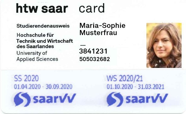 In addition to its function as a student ID card, the htw saar card can also be used as a semester ticket for public transportation and a library card.