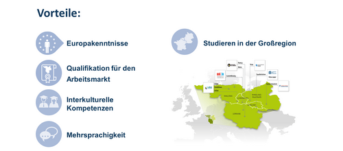 Das Modul besteht aus zwölf Einheiten zu Themen über Europa und die EU, die von Experten aus den sieben Partnerhochschulen der UniGR gestaltet werden. Das Modul besteht aus Videomaterial in Kombination mit eigenständiger Lektüre und schließt mit einem Multiple-Choice-Examen an der htw saar ab.