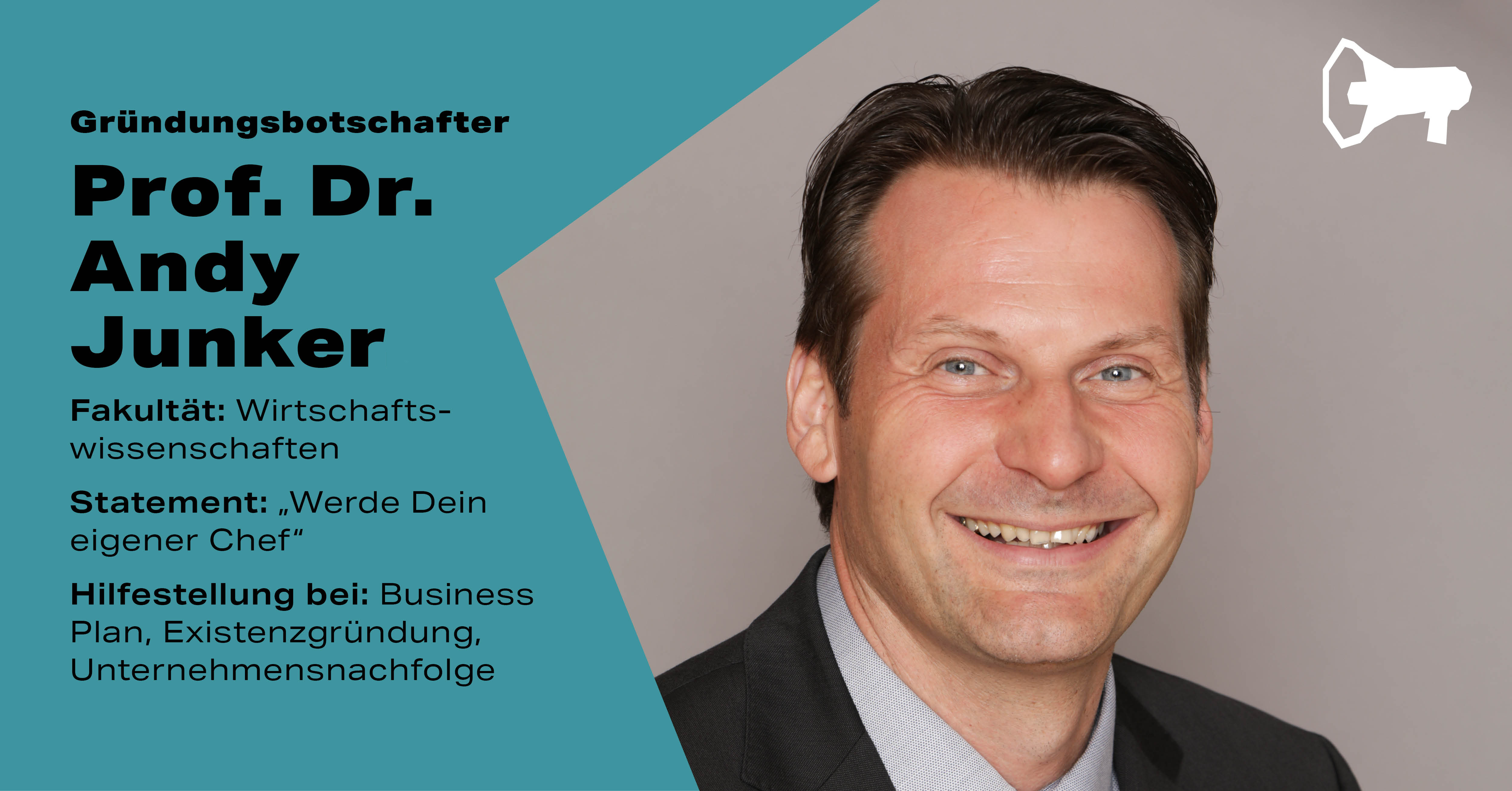 Prof. Dr. Andy Junker ist Vizepräsident für Studium, Lehre und Internationalisierung an der Hochschule für Technik und Wirtschaft des Saarlandes. Außerdem hat er die Professur für Allgemeine Betriebswirtschaft mit dem Schwerpunkt Mittelstand und Unternehmensnachfolge inne. Seine Forschungsschwerpunkte liegen in den Bereichen Unternehmensnachfolge und Unternehmensbewertung.