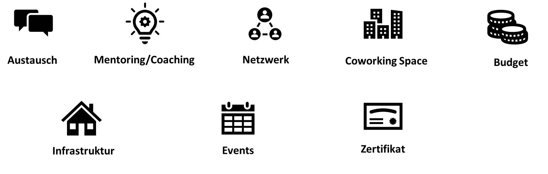 Wir unterstützen Euer Vorhaben in der Vorgründungsphase oder frühen Gründungsphase mit Beratung, Budget, Workshops, Events sowie Netzwerk auf dem Weg als erfolgreiche GründerInnen.