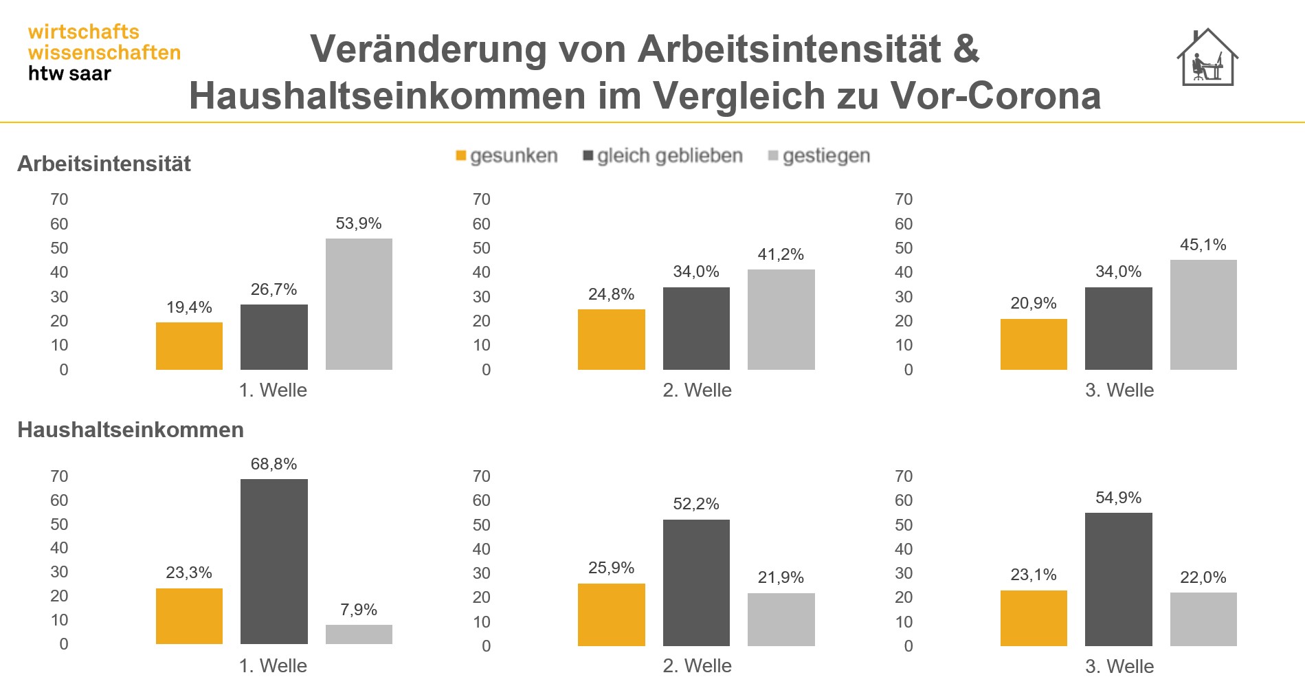 Abb. 1: Veränderungen der Arbeitsintensität und des Haushaltseinkommens im Verlauf der COVID-19-Pandemie