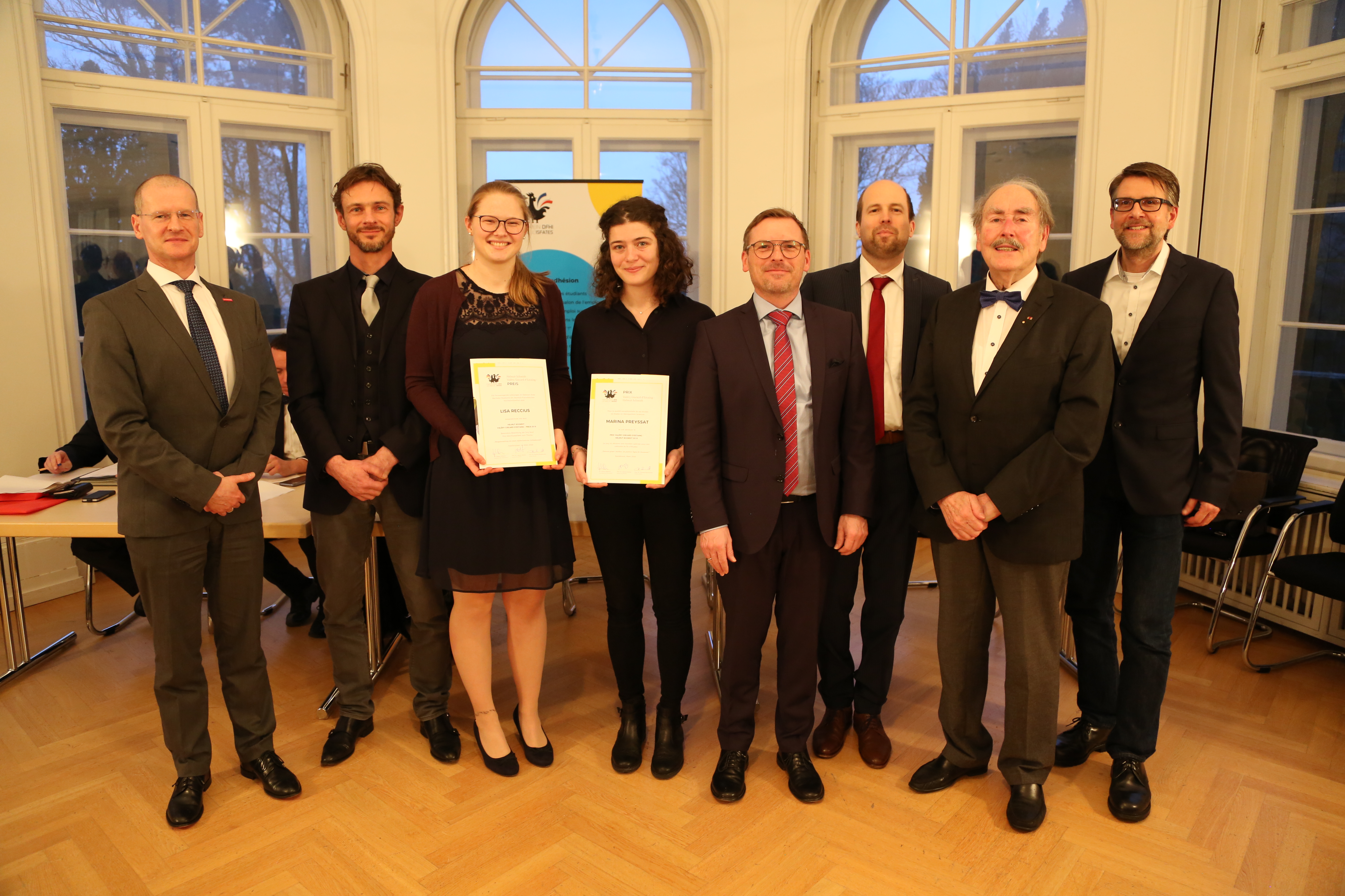 Im Rahmen der diesjährigen Mitgliederversammlung des Fördervereins in Saarbrücken zeichnete der Vorstand am 10. März 2020 Lisa Reccius für ihre Bachelor-Arbeit und Marina Preyssat für ihre Master-Arbeit mit dem Helmut Schmidt – Valerie Giscard d’Estaing – Preis aus, der mit jeweils 1.000 Euro dotiert ist.