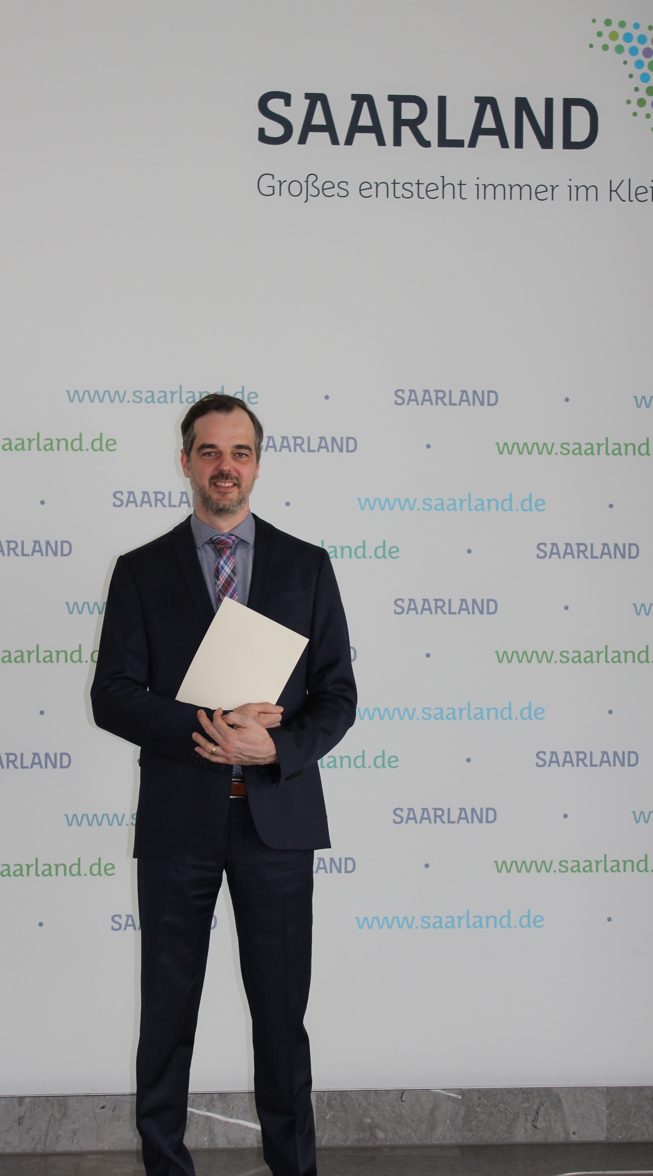 Die Beauftragte des Ministerpräsidenten für Hochschulen, Wissenschaft und Technologie, Dr. Susanne Reichrath, übergab am 18. März 2020 den von der saarländischen Staatskanzlei ausgelobten und von Ministerpräsident Tobias Hans verliehenen Landespreis Hochschullehre. „Besondere Leistungen müssen auch besonders gewürdigt werden“, bekräftigte Dr. Susanne Reichrath bei der Preisübergabe, die aus aktuellem Anlass nur in ganz kleinem Kreise in der Staatskanzlei stattfand.