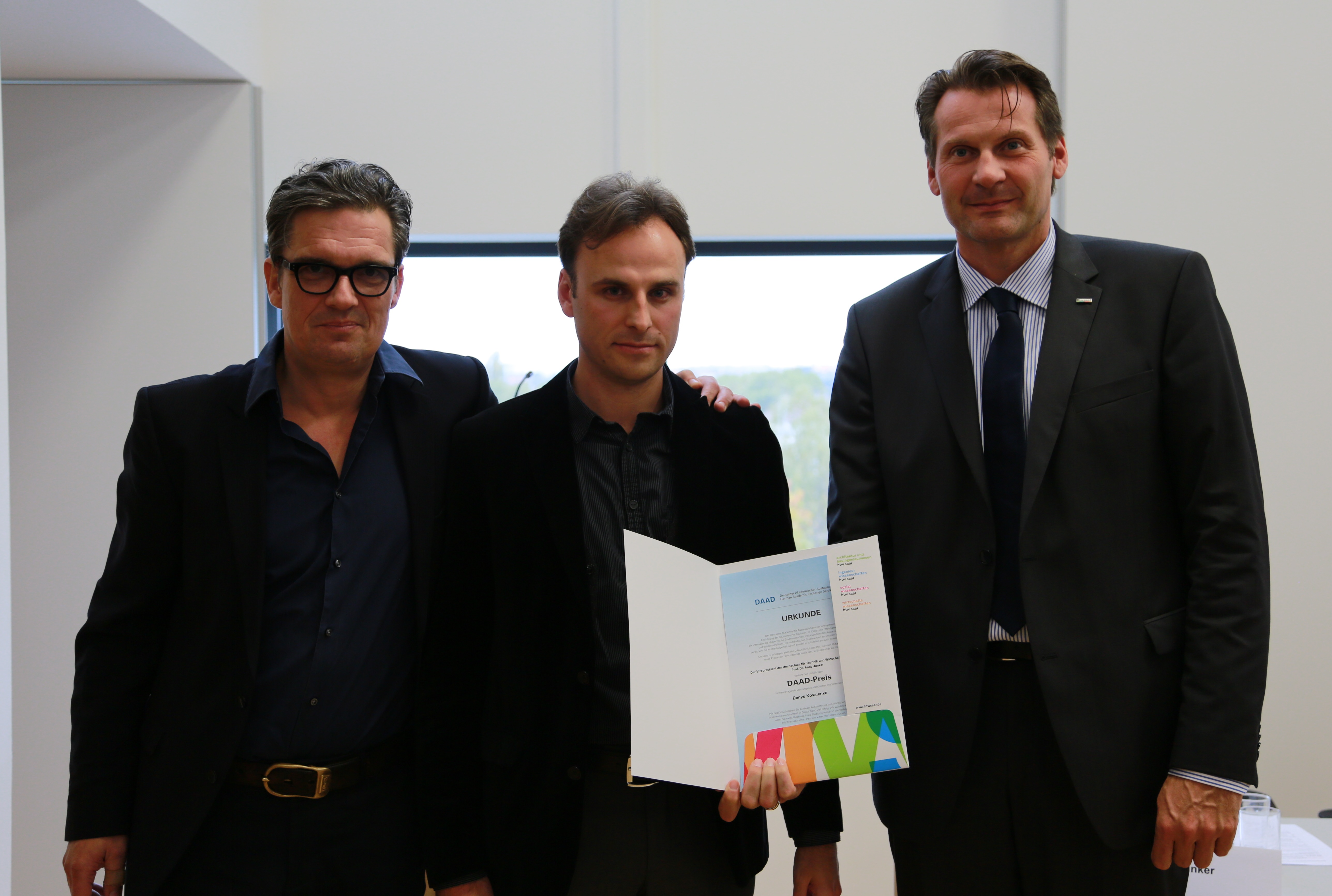 Im Rahmen der Begrüßung der ausländischen Studierenden an der Hochschule für Technik und Wirtschaft des Saarlandes (htw saar) am 24. Oktober 2018 überreichte Prof. Dr. Andy Junker, Vizepräsident für Studium, Lehre und Internationales, den mit 1.000 Euro dotierten DAAD-Preis für hervorragende Leistungen im Studium an Denys Kovalenko. „Ausländische Studierende sind eine Bereicherung für die Gesellschaft und die Hochschulgemeinschaft – die DAAD-Preisträger zeigen dies jedes Jahr auf eindrucksvolle Weise“, so Junker bei der Auszeichnung Kovalenkos.