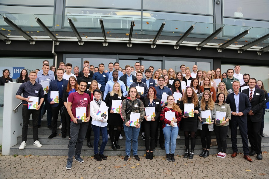 Auch in diesem Jahr ist die Hochschule für Technik und Wirtschaft des Saarlandes (htw saar) beim Deutschlandstipendium wieder „spitze“: Dank des Engagements von 21 Unternehmen, Stiftungen und Privatpersonen aus der Region konnte die Hochschule gemeinsam mit der StudienStiftungSaar 110 Deutschlandstipendium an Studierende vergeben. Am 8. November 2019 fand die feierliche Überreichung der Stipendienurkunden an Förderer und StipendiatInnen in der IHK Saar im Saarbrücken statt.