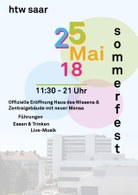 Das diesjährige Sommerfest der htw saar wird am 25.5.2018 ab 11:30 Uhr zusammen mit der Einweihungsfeier der Gebäude 10 und 11 am Campus Alt-Saarbrücken stattfinden und alle Mitarbeiterinnen und Mitarbeiter sowie Studierende aller Fakultäten an den Campus Alt-Saarbrücken locken. Zu diesem Anlass konnte die Hochschulleitung auch bereits den Ministerpräsidenten als Eröffnungsredner gewinnen.