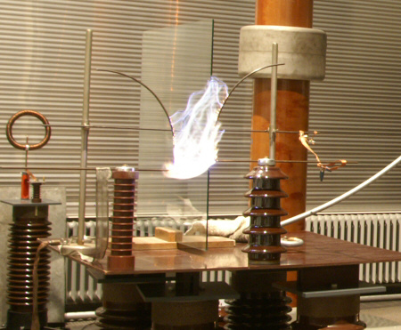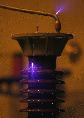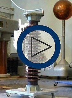 Video: Überschlag an einem Stützisolator bei 365kV Wechselspannung: Beginnend mit einem bläulich-weißen Streamer, der sich zum thermoionisierten Lichtbogen ausbaut (Zeitlupe: 8-fach verlangsamt)
