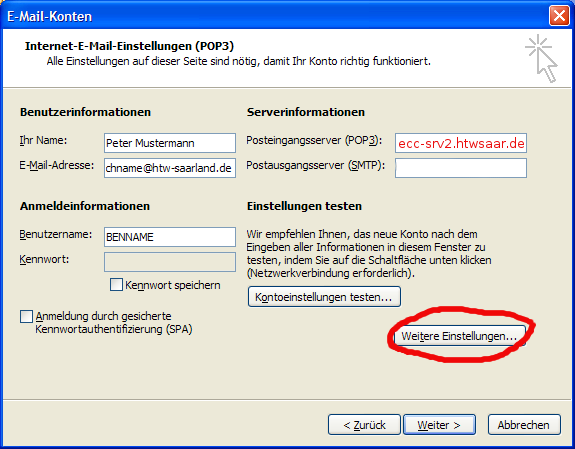 mit dem Schalter "Weitere Einstellungen..." geht es weiter