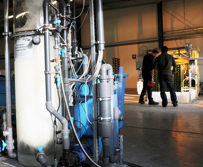 Heute, nach drei Jahren, arbeitet die Arbeitsgruppe aus Naturwissenschaftlern und Ingenieuren an der Weiterentwicklung der Biotechnik des Fluid-Kreislaufs. Die Stadtwerke Völklingen unterstützen die Hochschule für Technik und Wirtschaft des Saarlandes mit einem Ausbildungs- und Forschungsstandort, der Forschungshalle Völklingen (Bilder 3 bis 6). Auf einer Fläche von 400 Quadratmetern werden heute Verfahren erprobt und verbessert.