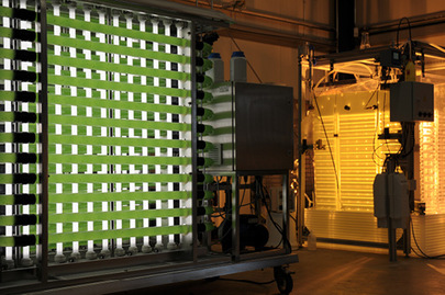 Bild 6: Photobioreaktoren für die Mikroalgenproduktion, die mit Prozesswasser aus einem primären Fluid-Kreislauf beschickt werden.