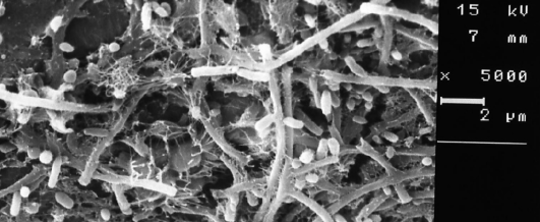 Bild 2: Rasterelektronenmikroskopische Aufnahme von Bakterien aus einem Fluid-Kreislauf für die Aquakultur von Fischen.