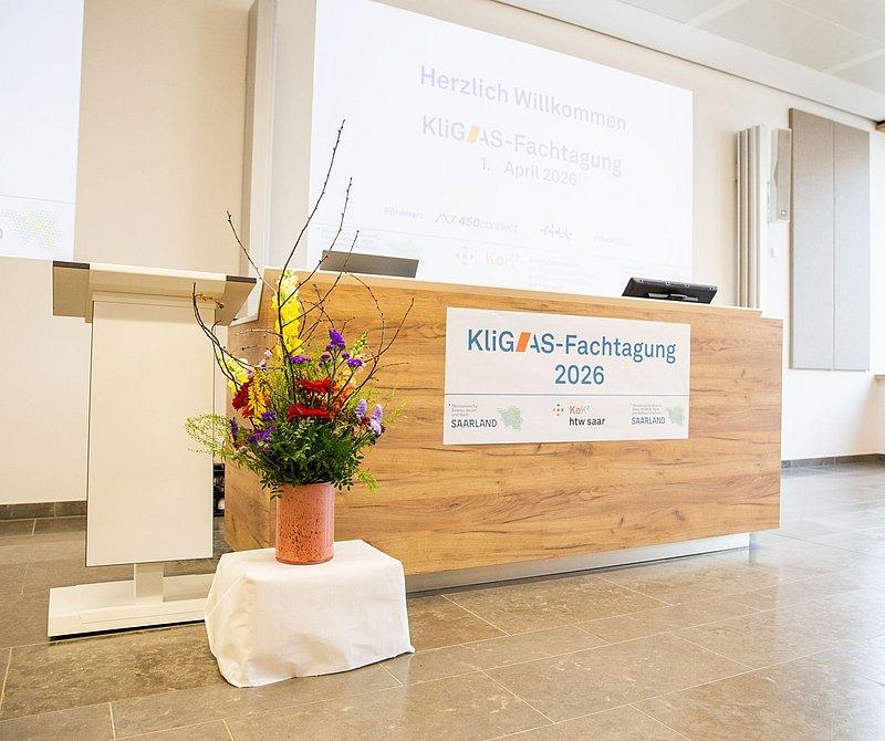 Wie Kommunen und Behörden besser auf Starkregen, Hochwasser und andere Extremwetterereignisse reagieren, stand am 1. April 2026 im Mittelpunkt der KliGAS-Fachtagung der Hochschule für Technik und Wirtschaft des Saarlandes (htw saar) und des Ministeriums für Umwelt, Klima, Mobilität, Agrar und Verbraucherschutz Saarland (MUKMAW). 160 Fachleute aus Wissenschaft, Behörden, Katastrophenschutz und Praxis tauschten sich über das beim Kompetenzzentrum für Klimafolgenanpassung und Katastrophenschutz der htw saar (KoK²) derzeit in der Entwicklung befindliche KlimaGefahrenAbwehrSystem (KliGAS) aus.