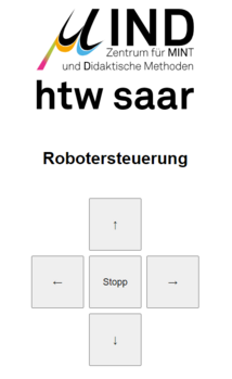 Beim Druck auf die Pfeiltasten der App wird eine Nachricht vom Endgerät an den ESP gesendet, der das Signal an den Arduino weiterleitet. Da dieser mit einem Motorshield verbunden ist, können die für den Richtungswechsel benötigten Motoren direkt mit einem PWM-Signal angesteuert werden.