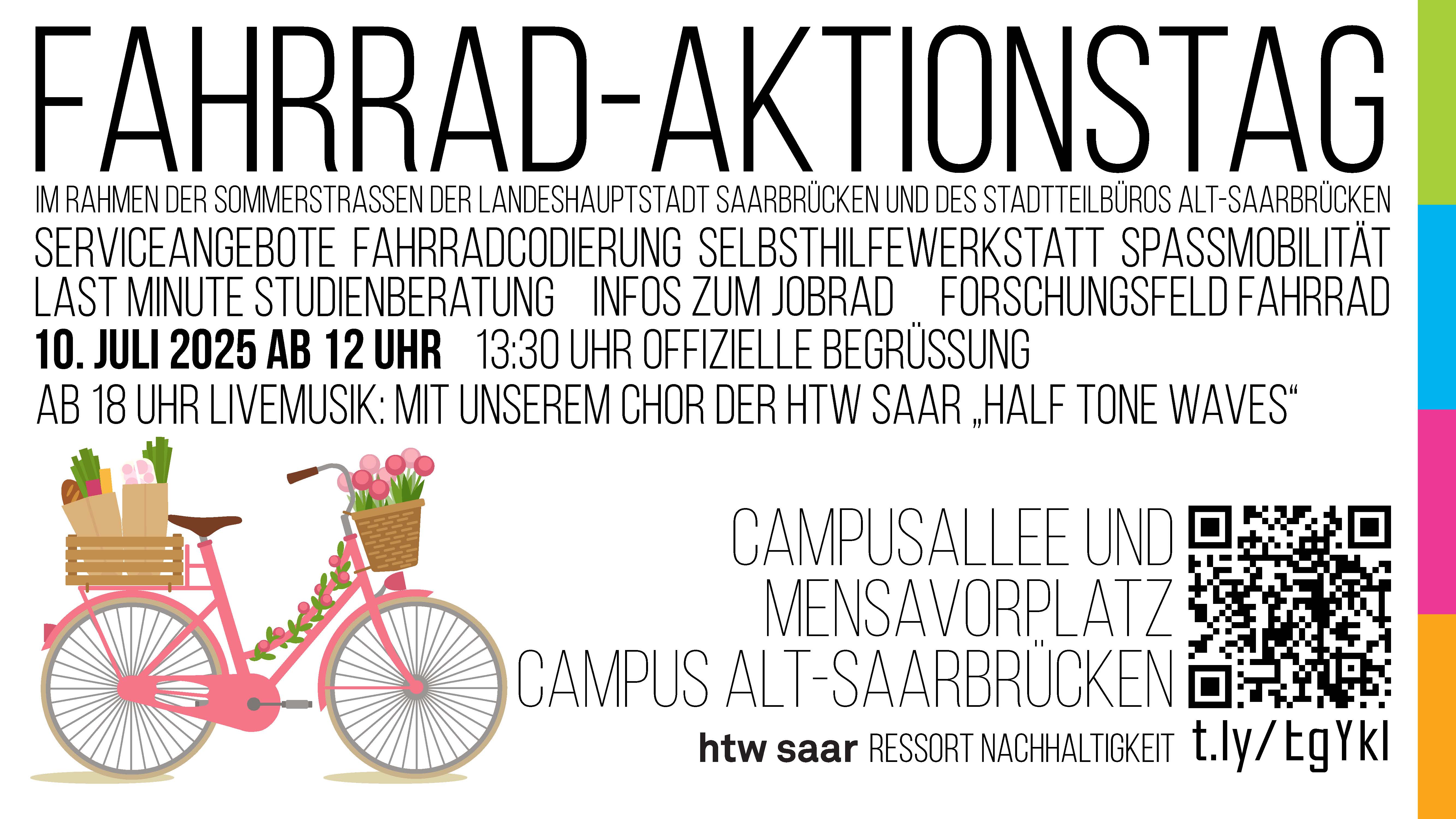 - Ausstellung von Postern und Exponaten zur Radmobilität (u.a. Verkehrssicherheit, Fahrradstraße, Mobilität an der htw saar)
