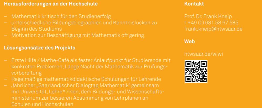 Die langen Mathematiknächte und das Mathe-Café erfreuen sich anhaltender Beliebtheit an der htw saar. Kneip und sein Team haben sich nicht das beliebteste Thema ausgesucht. Aber sie sind überzeugt, dass es wohl „einen Aufschrei“ geben würde, wenn sie ihr Engagement einstellen würden. Die langfristigen Bestrebungen, um der vielen Mathematik-Schwächen Herr zu werden, tragen mittlerweile auch Früchte: es kam zu ersten Änderungen in den Lehrplänen der Schulen und die Mathematik-Lehrenden an der htw saar sind für mögliche systematische Kenntnislücken der Studierenden sensibilisiert.