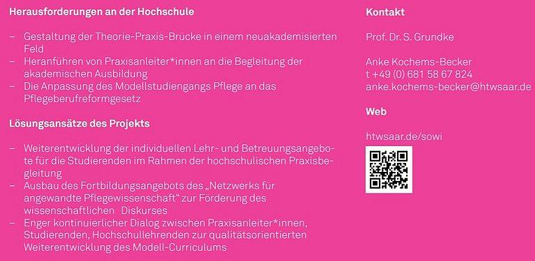 Im neuakademisierten Bereich der Pflegewissenschaft kommt der Gestaltung der Theorie-Praxis-Brücke eine entscheidende Rolle zu. Die Studierenden verbringen einen Großteil ihrer Zeit in den Einrichtungen der Kinder-, Kranken- und Altenpflege. Dafür schließen sie den ausbildungsintegrierten generalistischen Pflegemodellstudiengang mit vier Abschlüssen ab.