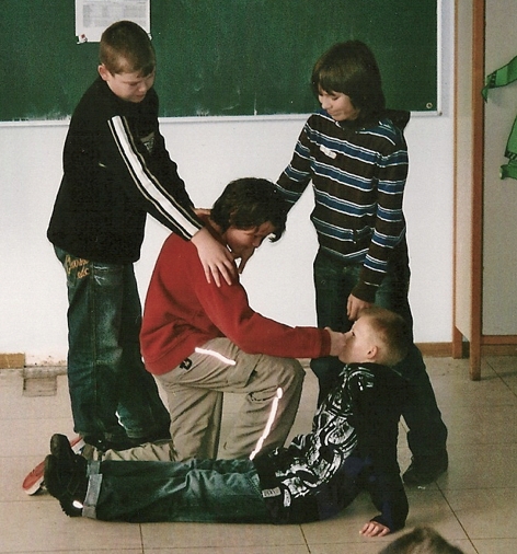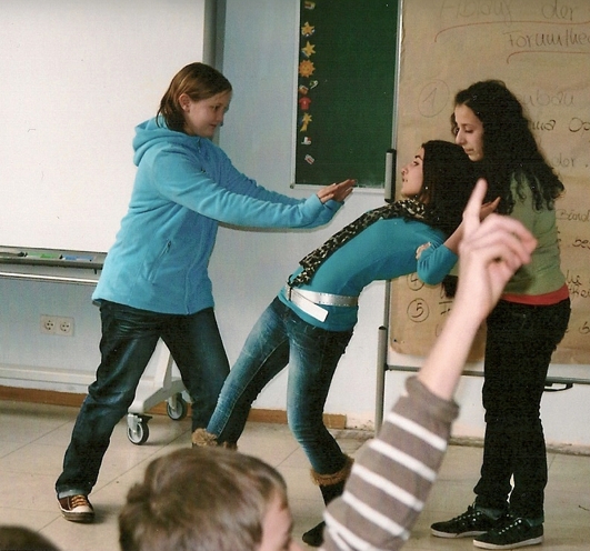 Im einem Blockseminar wurden, in Abstimmung mit den kooperierenden Schulen, an die Situation in den Klassen angepasste Szenen zum Thema "Kinder/Jugendliche stärker machen" entwickelt. Die Auftritte fanden im Jugendzentrum Sulzbach, der Eric Carle-Schule in Mainzweiler, der Edith-Stein-Realschule in Friedrichsthal und der Gesamtschule Lindenschule in Riegelsberg statt. Die Kinder bzw. Jugendlichen waren begeistert und arbeiteten engagiert mit. Es wurden viele gute Handlungsalternativen für die gezeigten Gewaltsituationen entwickelt.