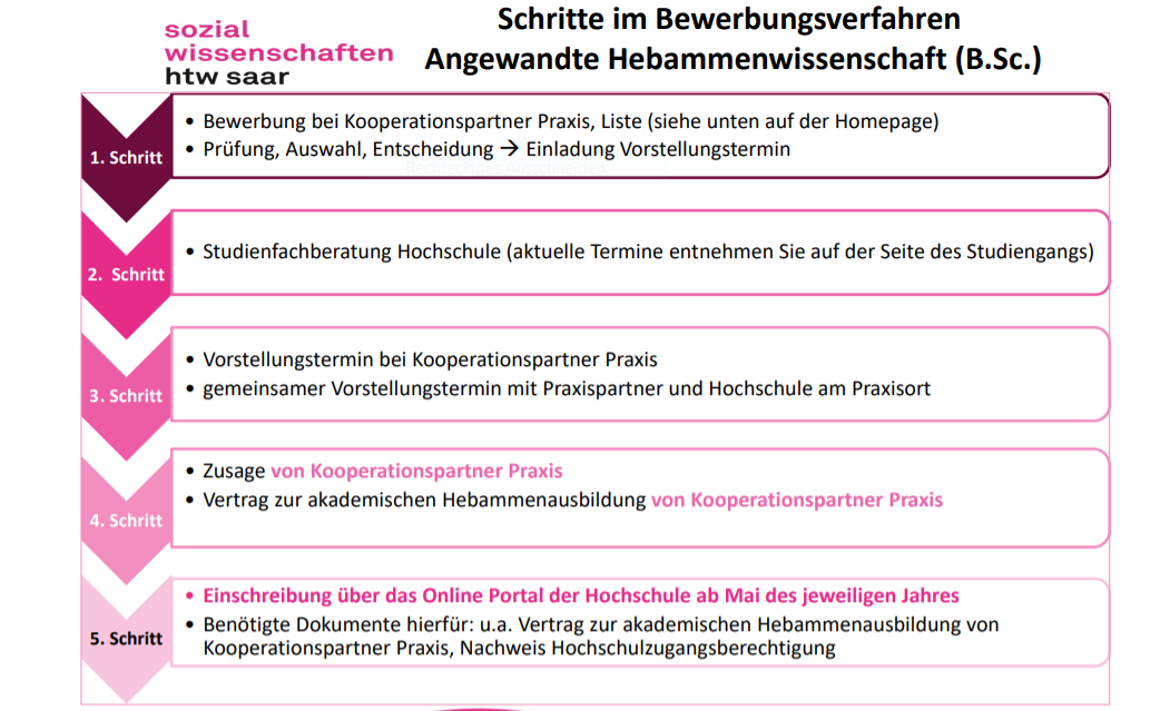 Wichtig: Um das Studium aufnehmen zu können, brauchen Sie einen Vertrag zur akademischen Hebammenausbildung bei einem unserer Praxispartner – lesen Sie weiter bei „Bewerbungsverfahren“