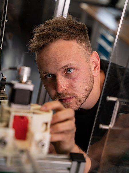 In meiner Bachelorthesis habe ich ein Prüfsystem zur Qualitätskontrolle von Eisenbahnrädern möglichst leicht und ergonomisch konstruiert. Dadurch ist die Handhabung einfacher geworden, und die Prüfung kann schneller und effizienter durchgeführt werden. So sind unsere Züge noch ein bisschen sicherer. In meiner Masterthesis habe ich das Verschleißverhalten an Kupplungen in hydraulischen Antrieben untersucht und daraus Verbesserungsmaßnahmen abgeleitet und entwickelt. Die Versuche ergaben, dass nun die Lebensdauer des Antriebs höher sowie Materialeinsatz und Betriebskosten geringer sind. Zurzeit arbeite ich als Laboringenieur im Werkstoffkundelabor an der htw saar. In der Lehre gebe ich mein Wissen in Laboren an Studierende weiter. In der Forschung beschäftige ich mich damit, Werkstoffe konstruktions- und fertigungsgerecht auszuwählen und durch entsprechende Prozesse an die Gegebenheiten anzupassen. Dadurch können Konstruktionen leichter und langlebiger gestaltet werden und sind somit ressourcenschonender und umweltfreundlicher.