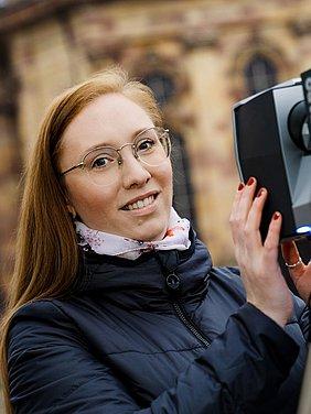 Mein Tätigkeitsfeld erstreckt sich vom Optimieren, Planen und Sanieren bis hin zu Entwurfszeichnungen von Gebäuden und Infrastruktur-Bauwerken. Außerdem bin ich für das Erstellen der 3D-Scans durch die Aufnahme von Referenzpunkten zuständig. Dabei geht es um die unterschiedlichsten Gebäude: Ludwigskirche, Stadtwerke, Einsegnungshalle Alt-Saarbrücken, Betonkanu Regattastrecke oder Notkirche Saarbrücken. Die 3D-Scans sind wichtig für die Bestandsaufnahme von Gebäuden und Objekten. Dabei erzeugen wir Quer- und Längsschnitte, die uns helfen Bauabläufe für den Nachbau der Objekte mit einer entsprechenden Software zu modellieren und zu planen.