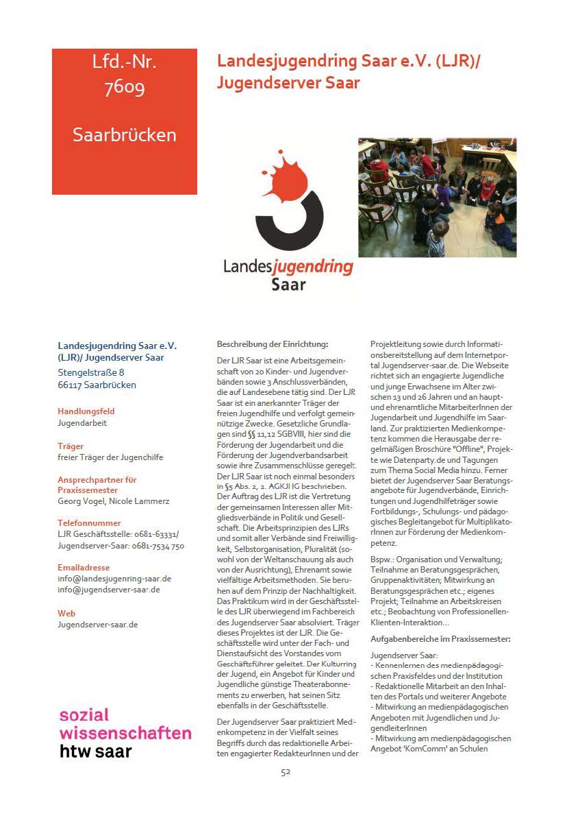 Dementsprechend gehen jedes Jahr Informationen zur Börse (Werbematerial) an umliegende Hochschulen (Uni Saarbrücken, Uni Trier, Uni Luxemburg, Uni Mainz, Hochschule Ludwigshafen, Hochschule Mainz etc.) und Partnerhochschulen (Estes) des Studiengangs, sowie an Fachschulen und Gymnasien im Saarland. An der Veranstaltung nehmen jedes Jahr ca. 35-40 Träger, Verbände, Praxiseinrichtungen, Projekte, Ministerien mit einem Messestand teil. Die Ziele der Aussteller(innen) liegen dabei auf ganz unterschiedlichen Ebenen: (1) Akquirieren von Schüler(inne) und Studierenden der ersten beiden Semester für Vorpraktika; (2) Akquirieren von Studierenden für die praktische Studienphase (Praxissemester); (3) Akquirieren von Studierenden für Forschungs- und Abschlussarbeiten; (4) Gewinnung von Honorarkräften; (5) Gewinnung von Bewerber(innen) für ausgeschriebene Stellen.
