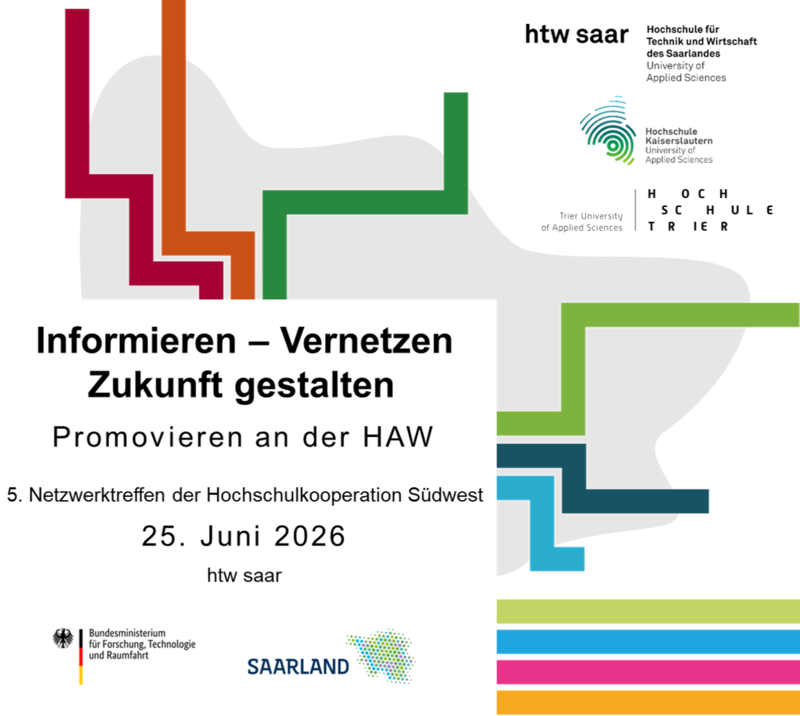 Für den 25. Juni 2026 laden die Hochschulen Trier, Kaiserslautern und die htw saar zur jährlichen Netzwerkveranstaltung der Hochschulkooperation Südwest ein. Die Veranstaltung richtet sich speziell an Promovierende und solche, die eine Promotion oder eine wissenschaftliche Karriere an einer Hochschule für angewandte Wissenschaften (HAW) in Erwägung ziehen.