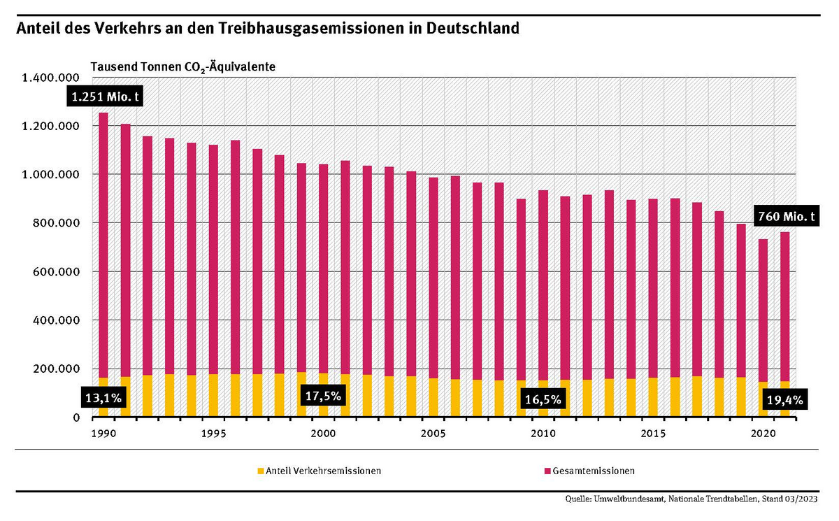 Abbildung 1: Anteil des Verkehrs an den Treibhausgasemissionen in Deutschland, Quelle: Umweltbundesamt (2023): Emissionen des Verkehrs.