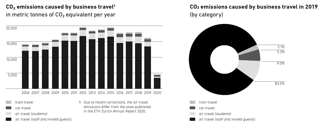 Abbildung 2: Bilanz der durch Dienstreisen induzierten CO2-Emissionen an der ETH-Zürich, Quelle: Sustainability Report 2019/2020, ETH Zürich (2021)