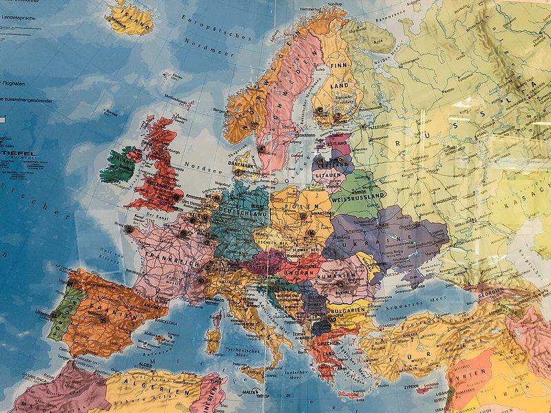 Das folgende Bild zeigt die Auslandspartner unserer Fakultät im europäischen Raum. Hinzu kommen Partnerhochschulen im außereuropäischen und (mittel-)amerikanischen Raum, in Asien und Neuseeland.