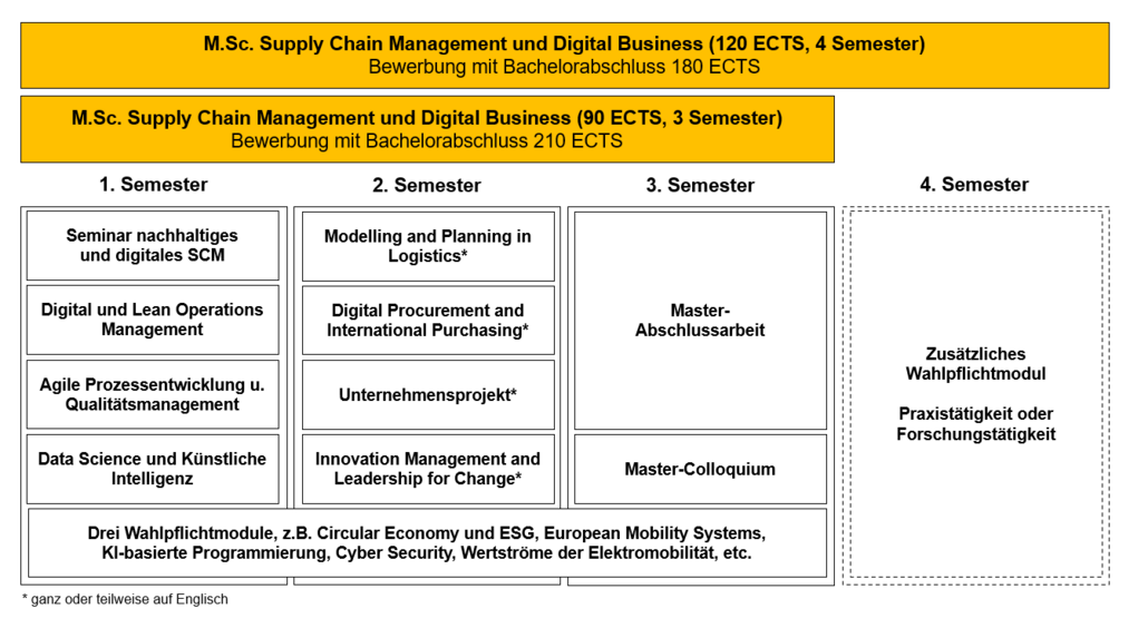 Die genauen Zugangs- und Zulassungsvoraussetzungen finden Sie in den FAQ auf dieser Webseite. Die folgende Abbildung zeigt eine Übersicht des Studienverlaufs.