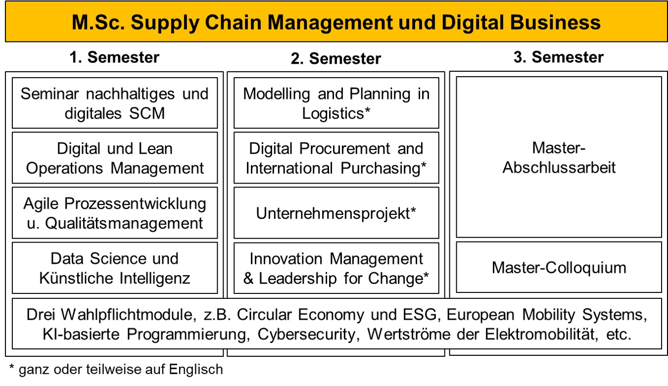 Die Hochschule bietet hierfür den neuen dreisemestrigen Master-Studiengang „Supply Chain Management und Digital Business“ an, um Studierenden die benötigten Fähigkeiten zum Management von Lieferketten mit Themen rund um Nachhaltigkeit, digitale Geschäftsmodelle und Anwendungen der Künstlichen Intelligenz zu vermitteln. Im neuen Master-Studiengang treffen High-Tech-Know-How und Nachhaltigkeit auf die beruflichen Herausforderungen einer internationalen Geschäftswelt. Praxisnah und anwendungsorientiert werden fundierte Kenntnisse in Supply Chain Management, Wirtschaftsinformatik und quantitativen Methoden zur Entscheidungsunterstützung geschult. Die Studierenden erhalten Fähigkeiten zum Führen von Veränderungen und erwerben „Future Skills“ wie beispielsweise kreative Lösungstechniken, die am Arbeitsmarkt aktuell stark nachgefragt werden. In Projekten mit Praxispartnern wie Bosch, Festo oder Startups aus der regionalen Wirtschaft setzen sie ihr erlerntes Wissen in echten Challenges ein – von der KI-gestützten Lagerautomatisierung bis zur Kreislaufwirtschaft für E-Auto-Batterien.